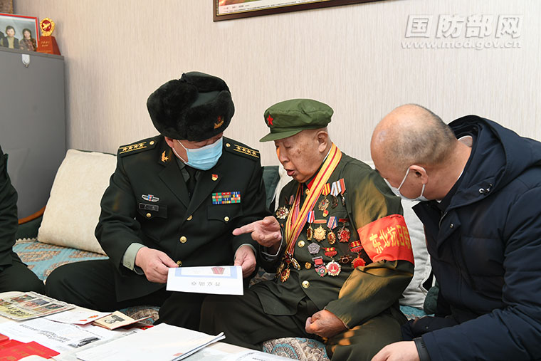 哈尔滨市军地领导寻访探望东北抗联老战士王济堂。常智科摄